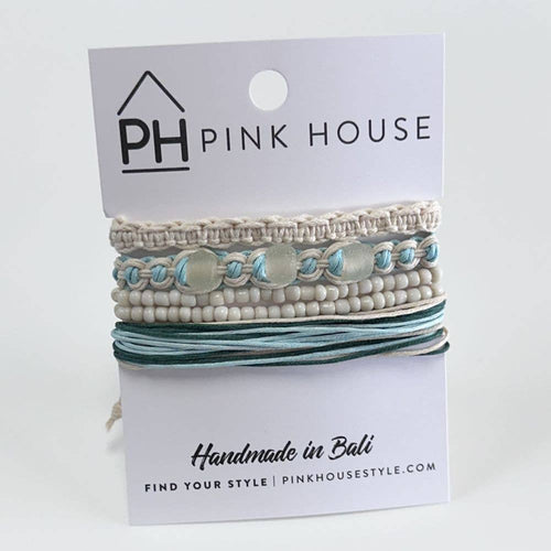 Arm Deco - Beach Glass Pull Bracelets Set of 4 - Blue by Pink House Imports