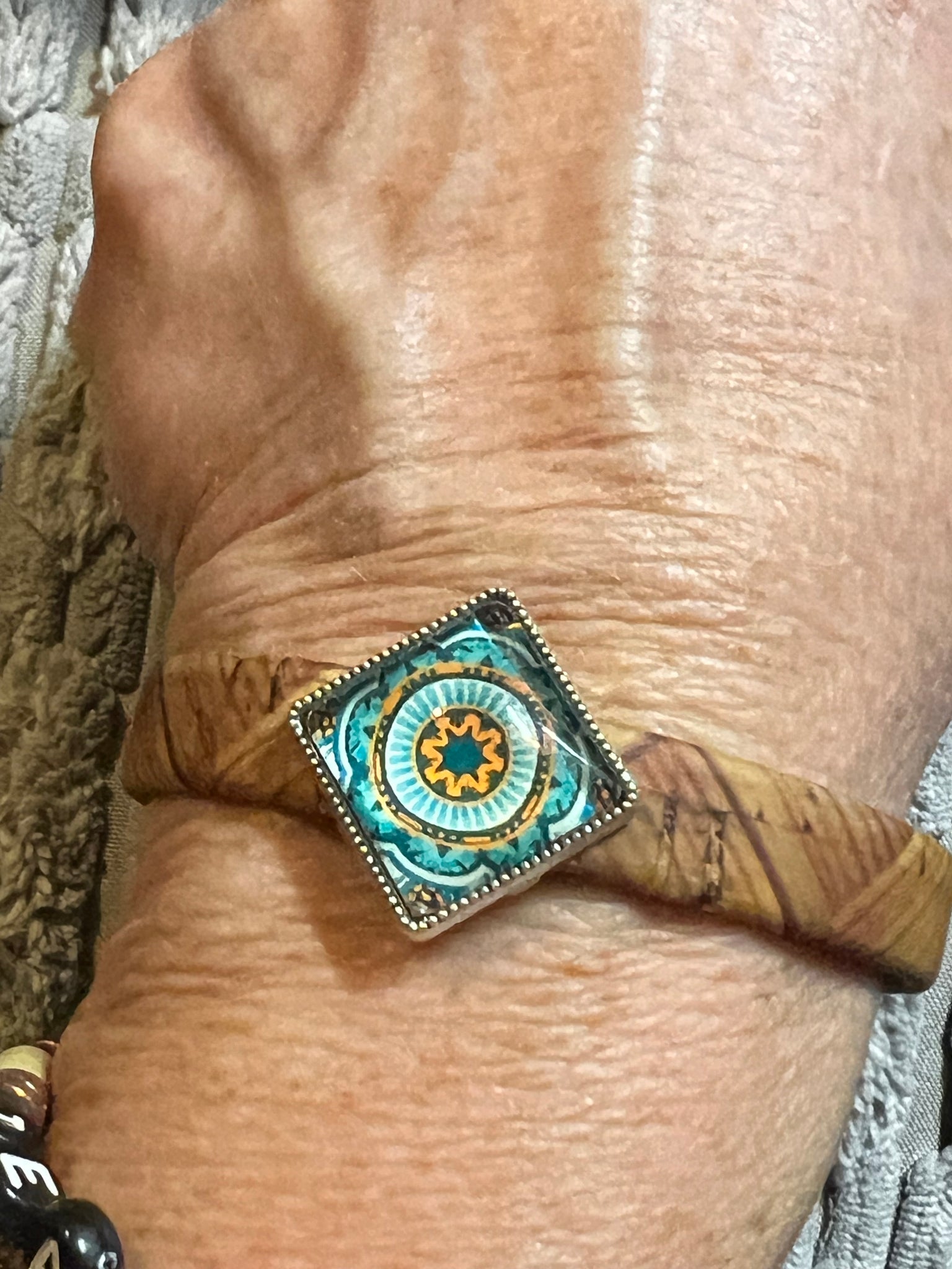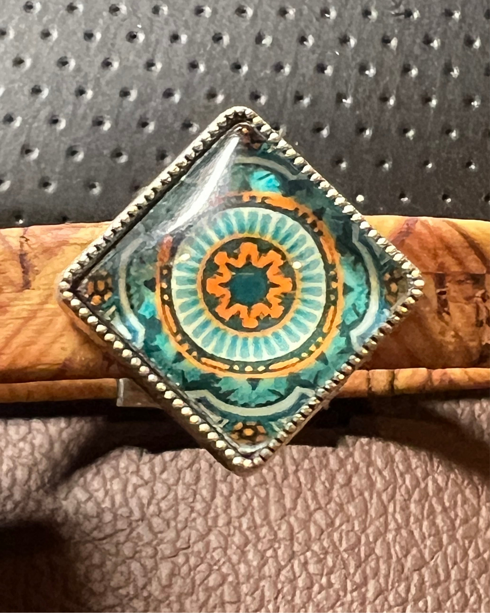 This durable Portuguese cork bracelet is embellished with a glass tile slider. This is truly an all-season accessory.