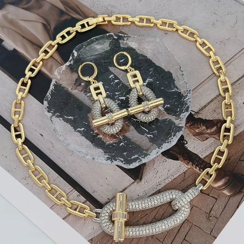 Classic high style design. CZ encrusted toggle look pendant. Baguette crystals in the toggle.