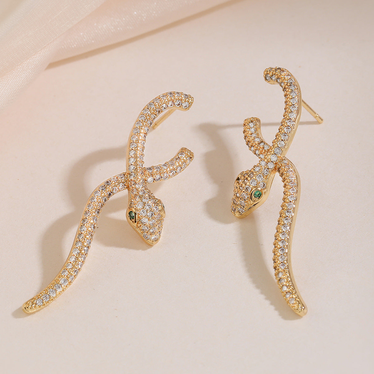 Earrings are CZ embellished with contrasting green crystal eyes...